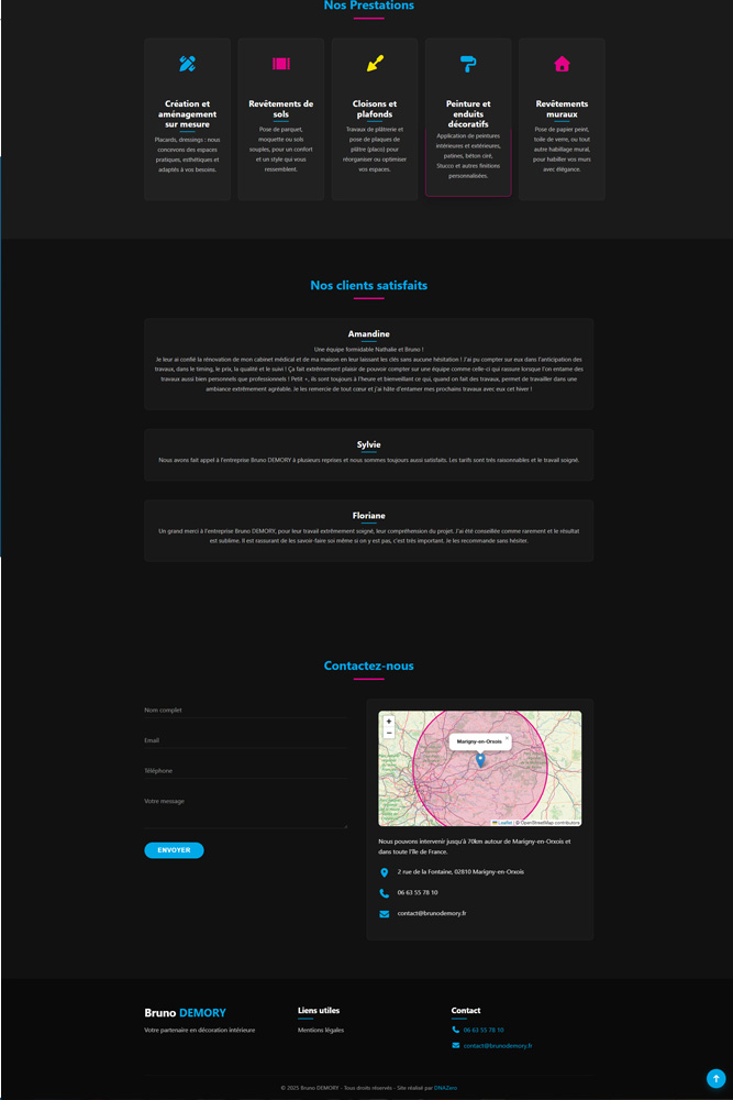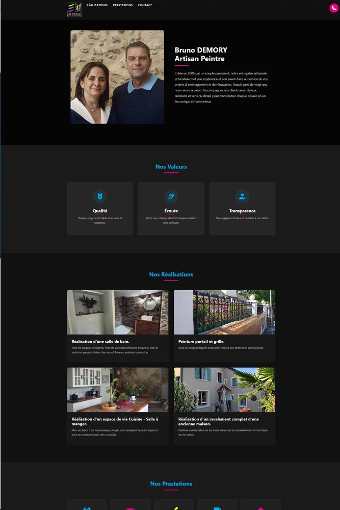 J'ai créé un site vitrine simple et efficace pour présenter l'activité de l'artisan peintre Bruno DEMORY